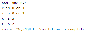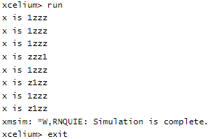 module tb(); reg a; initial begin a = 1'bx; $display("a is %b",a); if (a) $display("x is true"); else $display("a is false"); a = 1'bz; $display("a is %b",a); if (a) $display("z is true"); else $display("z is false"); end endmodule