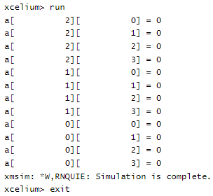 module test(); bit [2:0][0:3] a; initial begin foreach (a[i, j]) $display("a[%d][%d] = %d", i, j, a[i][j]); end endmodule