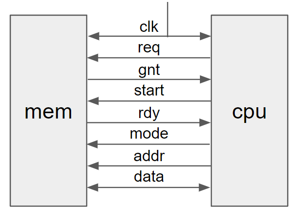 다음과 같이 메모리와 cpu를 연결하는 디자인이 있다고 하자.